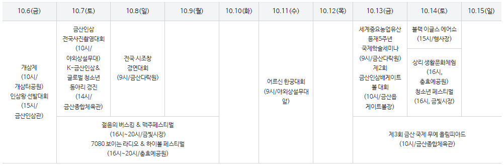 2023.09.25 - [여행의 팁팁] - 10월 금산인삼축제, 백종원의 금산인삼 푸드코트 운영