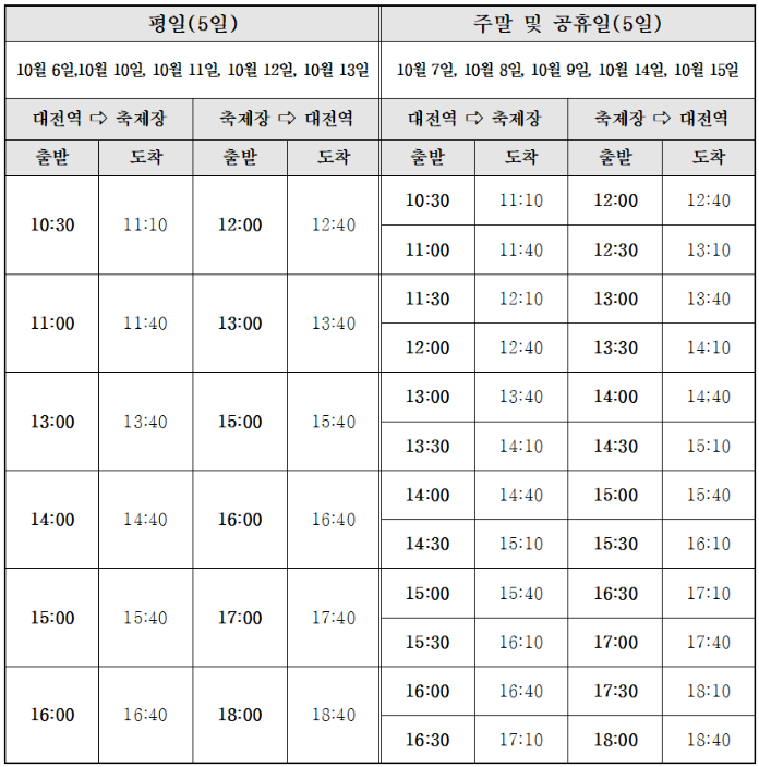 축제 기간 동안 관광객들을 위해서 대전역에서 행사장까지 바로 올 수 있는 셔틀버스를 운행한다고 합니다.